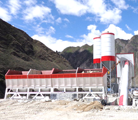 【主要設備】:骨料配料供給系統、粉料供給系統、供水系統、攪拌裝置、儲料裝置、控制室、計量控制系統等系統組成。